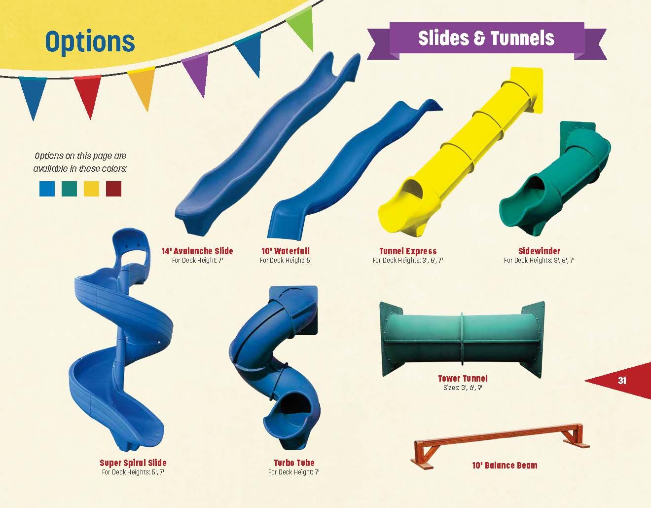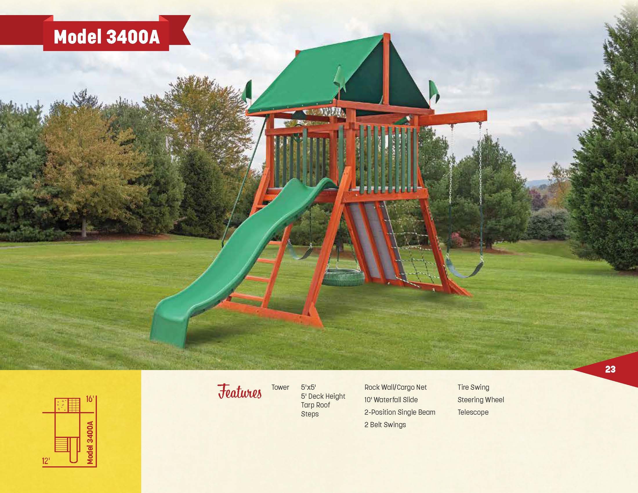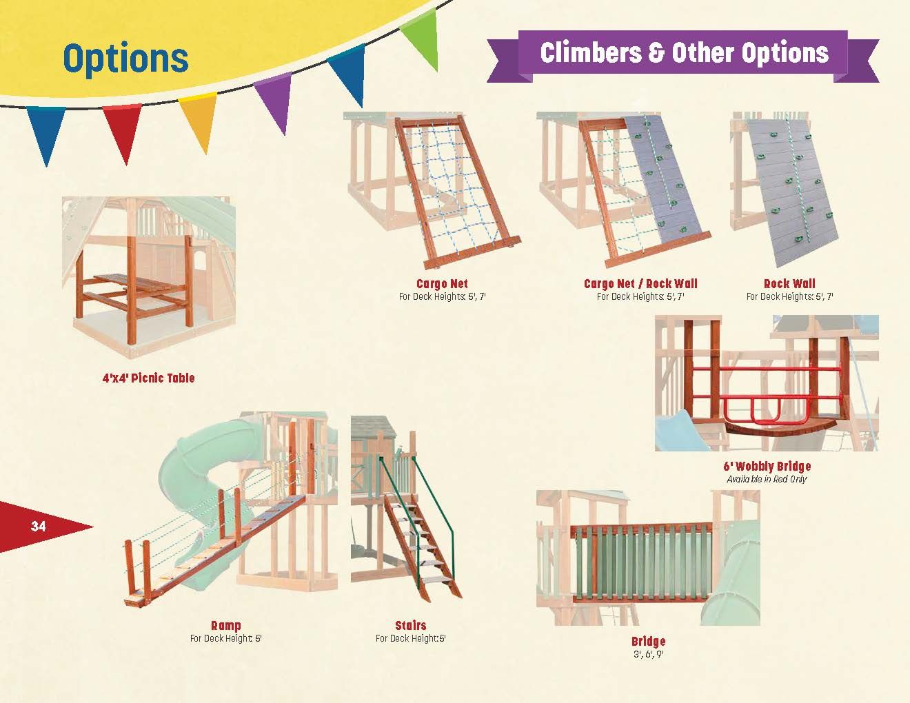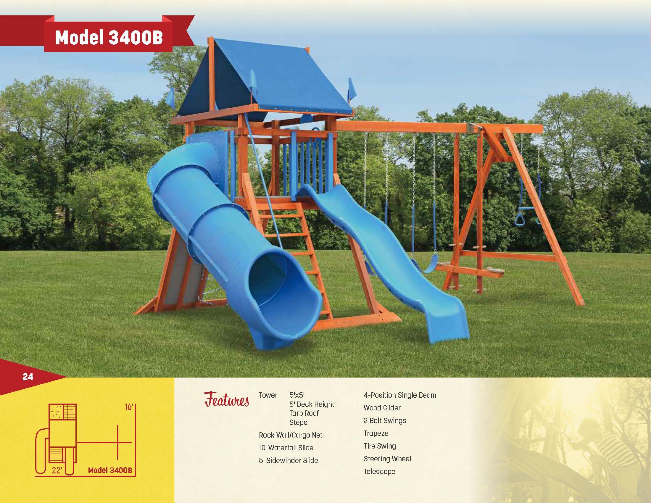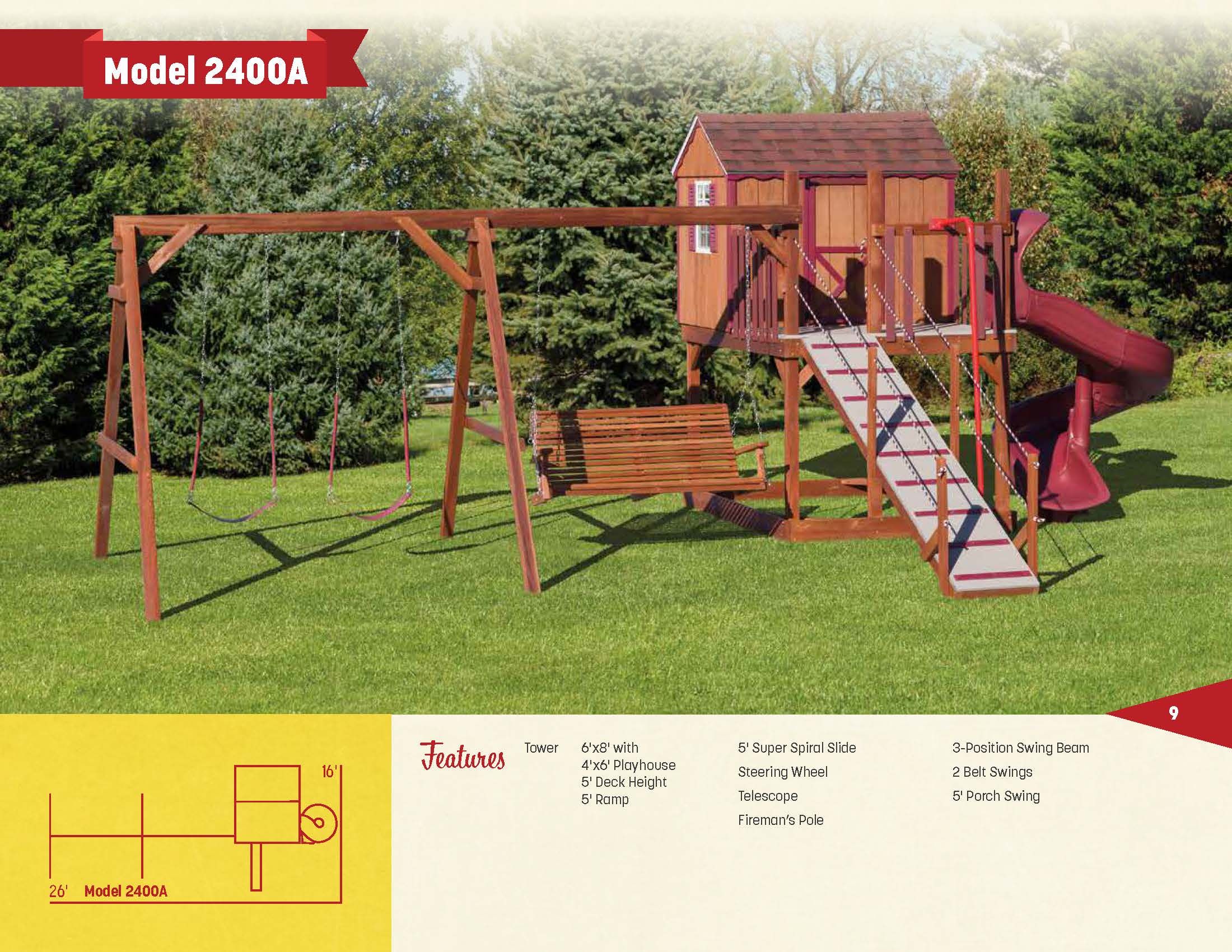Our swingsets are constructed of No. 1 Grade Southern Yellow Pine that has been pressure treated and kiln dried. All of our lumber is molded for a smooth surface and corners are rounded so there are no sharp edges. Composite decking is used on all exposed floors. All metal components such as glider brackets, handrails, fireman’s poles, and monkey bar dowels are powder-coated for a beautiful, long-lasting finish. Swings have heavy-duty rubber grip chains. Plastic gliders and slides are constructed of durable, heat-resistant plastic. All swingsets are stained with an attractive redwood stain.